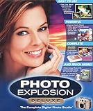 Photo Explosion Deluxe is recommended to anyone who wants to express themselves artistically through their digital photos. A fast Pentium 3 processor or above is suggested for advanced editing. --Gordon Goble, Amazon.com Far more than a digital image organizer and quickie touch-up tool, Photo Explosion Deluxe is a massive four-CD suite designed for the photographic artist and craftsperson. With this broad-ranging package, you can capture still images from your digital camera, DV camcorder or scanner, alter them to the very limits of your imagination, and display or print them in any way you see fit. Photo Explosion Deluxe offers a stunning array of editing tools. We started with simple contrast and focus adjustments and then curled the edge of our photo as if it was lifting slightly from its backing mat. We added a few translucent soap bubbles in the top left corner, threw a softened spotlight on the subject's face, and placed some clouds and streaky raindrops throughout. We then selected an antique frame, titled it with an ornate script, and even added our signature at the bottom right. Although every parameter of the editing process is fully adjustable, the program can also perform a variety of automatic modifications. After you've explored the central application, you'll want to investigate the extra three CDs for even more ideas and concepts. Here you'll find scores of artistic and fancy fonts, hundreds of miscellaneous stationery and greeting card templates, and oodles of professional-grade photos covering a wide range of subjects, from scenery and sunsets to scantily-clad models. The fourth CD houses bonus software only available in Photo Explosion's Deluxe version, including a utility for panorama stitching and two tools for configuring and exporting your photos to handheld computers. The final application, DVD PhotoPlay, allows you to build a slide show from selected images, burn it to a CD-RW, and play it on any CD or DVD player that supports Video CD 2.0.